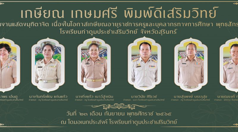 กลุ่มบริหารงานบุคคล รอบรั้วเราชาว ขาว-เขียว ขอเชิญร่วมงานแสดงมุทิตาจิต เนื่องในโอกาสเกษียณอายุราชการครูและบุคลากรทางการศึกษา พุทธสักราช ๒๕๖๕ 2022-09-12 audthapon podphunga 0 Comments